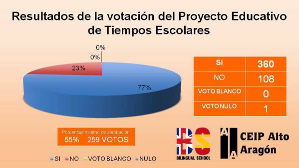 Rotundo éxito del Proyecto de Tiempos Escolares. Queremos agradecer a las familias la enorme participación en esta jornada de votación. Ha sido